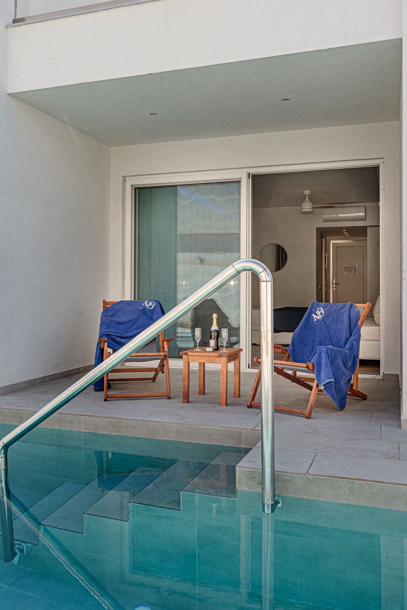 Η Executive Junior Σουίτα με πλήρη θέα στη θάλασσα και ιδιωτική πισίνα προσφέρει μπάνιο με ντους βροχής walk-in, smart TV 42’’, δωρεάν tablet (απαιτείται προκαταβολή), χρηματοκιβώτιο δωρεάν…